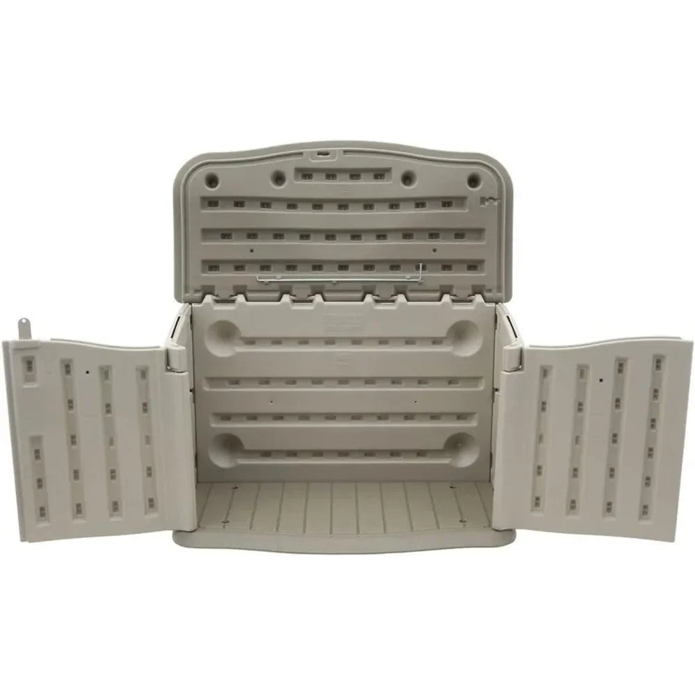 Compared with wooden sheds, this resin unit remains stable and maintenance-free across seasons, without staining, painting, or sealing. It’s an excellent choice for spaces where you want quick access to items and a tidy, cohesive look that blends with neutral outdoor decor. For security, pair the lid with a compatible lock and store keys in a secure place to prevent unauthorized access.