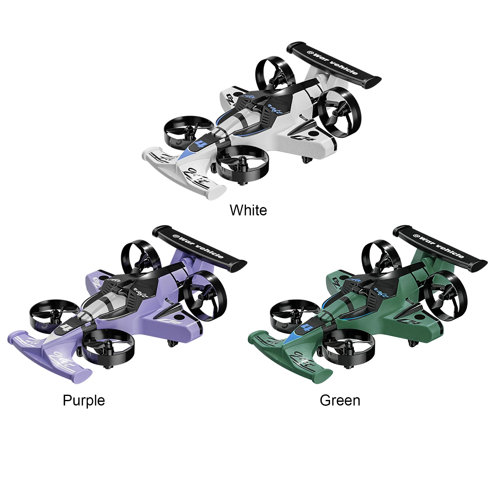 2-in-1 Land Air RC Quadcopter & Drift Car with 360 Rotation & Headless Mode 2.4G Remote Control Airplane Christmas Birthday Gifts for Adults & Teen Boys Features: 1.Dual Play Experience: Enjoy thrilling dual-mode fun with our 2-in-1 land air RC quadcopter & drift car, seamlessly switching between ground drifting and sky flying. Ideal for outdoor adventures, indoor games, or as a fun party gift, great for all ages. 2.Easy One-Key Takeoff/Landing: Master the skies effortlessly with our remote control airplane's intuitive one-button system. Designed for beginners, a single press lets you take off or land instantly, making it suitable for kids or anyone new to remote control toys. 3.Show-Stopping Aerial Stunts: Perform precise ascents, descents, turns, flips, and circles with our RC aircraft. The advanced control system ensures smooth, stable flights so you can showcase amazing tricks and aerial maneuvers at any time. 4.Extended Play Time: Stay entertained longer thanks to up to 7-8 minutes of flight and 15 minutes of ground operation with our RC plane drone. Whether flying or drifting, enjoy hours of uninterrupted fun without constantly recharging. 5.Sturdy & Safe for All: Crafted from high-strength lightweight plastic and crash-resistant foam, this RC airplane stands up to bumps and drops. Suitable for both kids and adults, it offers reliable safety and lasting excitement for indoor or outdoor play. Specification: Origin: Mainland China Material: ABS Color: White/Purple/Green (optional) Flight Performance: Multi-speed adjustment, headless mode, 360° flip, drift mode, one-key takeoff and landing, circular flight Battery: 3.7V/500mAh Remote Control Battery: 3 AAA batteries (not included) Flight Time: 7 minutes of flight, 15 minutes of drifting Charging Time: 1 hour Remote Control Distance: 2.4G signal/100 meters (remote controller) Size: 210*145*65mm Note: 2-in-1 Land Air RC Quadcopter & Drift Car with 360 Rotation & Headless Mode 2.4G Remote Control Airplane Christmas Birthday Gifts for Adults & Teen Boys Features: 1.Dual Play Experience: Enjoy thrilling dual-mode fun with our 2-in-1 land air RC quadcopter & drift car, seamlessly switching between ground drifting and sky flying. Ideal for outdoor adventures, indoor games, or as a fun party gift, great for all ages. 2.Easy One-Key Takeoff/Landing: Master the skies effortlessly with our remote control airplane's intuitive one-button system. Designed for beginners, a single press lets you take off or land instantly, making it suitable for kids or anyone new to remote control toys. 3.Show-Stopping Aerial Stunts: Perform precise ascents, descents, turns, flips, and circles with our RC aircraft. The advanced control system ensures smooth, stable flights so you can showcase amazing tricks and aerial maneuvers at any time. 4.Extended Play Time: Stay entertained longer thanks to up to 7-8 minutes of flight and 15 minutes of ground operation with our RC plane drone. Whether flying or drifting, enjoy hours of uninterrupted fun without constantly recharging. 5.Sturdy & Safe for All: Crafted from high-strength lightweight plastic and crash-resistant foam, this RC airplane stands up to bumps and drops. Suitable for both kids and adults, it offers reliable safety and lasting excitement for indoor or outdoor play. Specification: Origin: Mainland China Material: ABS Color: White Flight Performance: Multi-speed adjustment, headless mode, 360° flip, drift mode, one-key takeoff and landing, circular flight Battery: 3.7V/500mAh Remote Control Battery: 3 AAA batteries (not included) Flight Time: 7 minutes of flight, 15 minutes of drifting Charging Time: 1 hour Remote Control Distance: 2.4G signal/100 meters (remote controller) Size: 210*145*65mm Note: 2-in-1 Land Air RC Quadcopter & Drift Car with 360 Rotation & Headless Mode 2.4G Remote Control Airplane Christmas Birthday Gifts for Adults & Teen Boys Features: 1.Dual Play Experience: Enjoy thrilling dual-mode fun with our 2-in-1 land air RC quadcopter & drift car, seamlessly switching between ground drifting and sky flying. Ideal for outdoor adventures, indoor games, or as a fun party gift, great for all ages. 2.Easy One-Key Takeoff/Landing: Master the skies effortlessly with our remote control airplane's intuitive one-button system. Designed for beginners, a single press lets you take off or land instantly, making it suitable for kids or anyone new to remote control toys. 3.Show-Stopping Aerial Stunts: Perform precise ascents, descents, turns, flips, and circles with our RC aircraft. The advanced control system ensures smooth, stable flights so you can showcase amazing tricks and aerial maneuvers at any time. 4.Extended Play Time: Stay entertained longer thanks to up to 7-8 minutes of flight and 15 minutes of ground operation with our RC plane drone. Whether flying or drifting, enjoy hours of uninterrupted fun without constantly recharging. 5.Sturdy & Safe for All: Crafted from high-strength lightweight plastic and crash-resistant foam, this RC airplane stands up to bumps and drops. Suitable for both kids and adults, it offers reliable safety and lasting excitement for indoor or outdoor play. Specification: Origin: Mainland China Material: ABS Color: Purple Flight Performance: Multi-speed adjustment, headless mode, 360° flip, drift mode, one-key takeoff and landing, circular flight Battery: 3.7V/500mAh Remote Control Battery: 3 AAA batteries (not included) Flight Time: 7 minutes of flight, 15 minutes of drifting Charging Time: 1 hour Remote Control Distance: 2.4G signal/100 meters (remote controller) Size: 210*145*65mm Note: 2-in-1 Land Air RC Quadcopter & Drift Car with 360 Rotation & Headless Mode 2.4G Remote Control Airplane Christmas Birthday Gifts for Adults & Teen Boys Features: 1.Dual Play Experience: Enjoy thrilling dual-mode fun with our 2-in-1 land air RC quadcopter & drift car, seamlessly switching between ground drifting and sky flying. Ideal for outdoor adventures, indoor games, or as a fun par