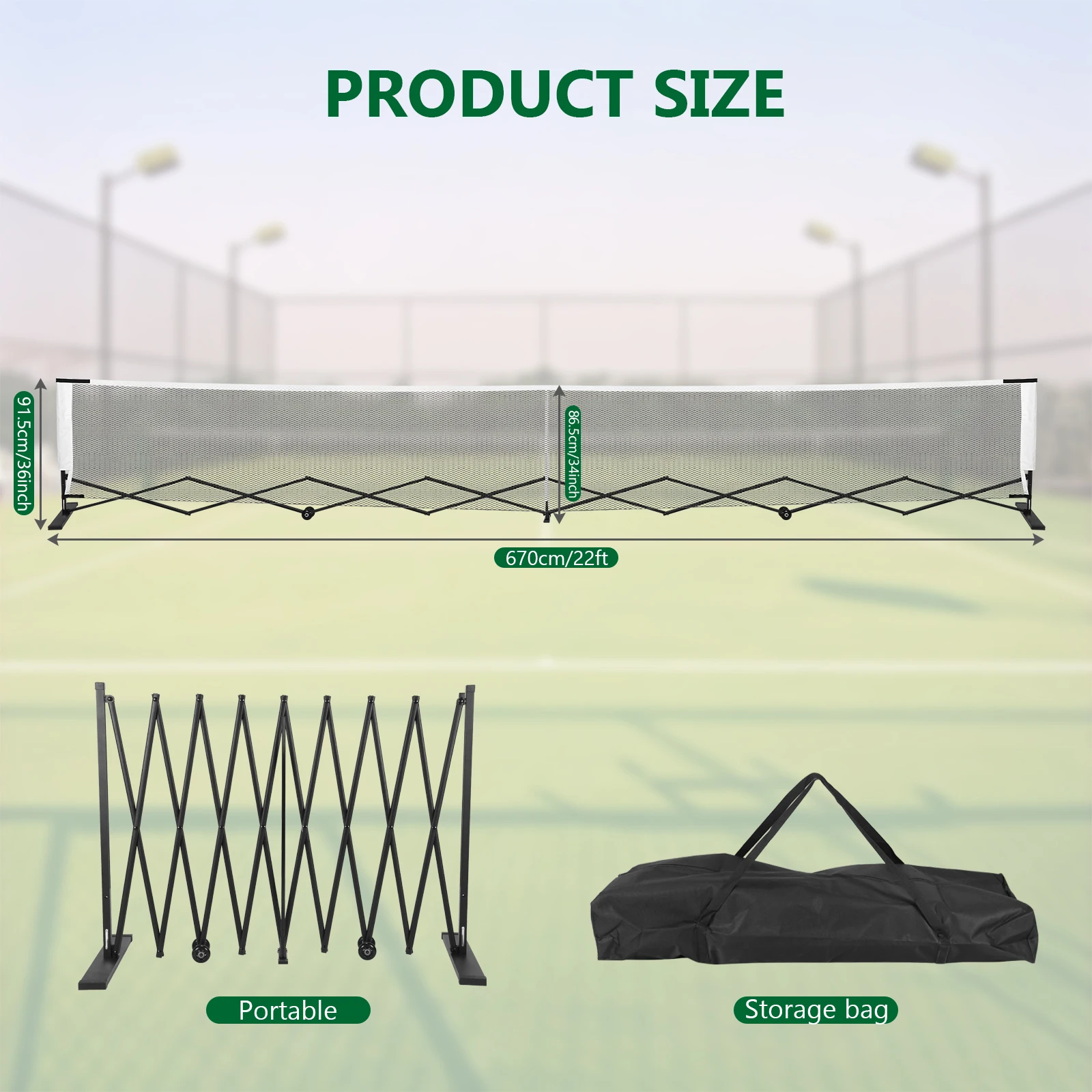 APWIKOGER Retractable Pickleball Net Durable Portable Indoor Outdoor